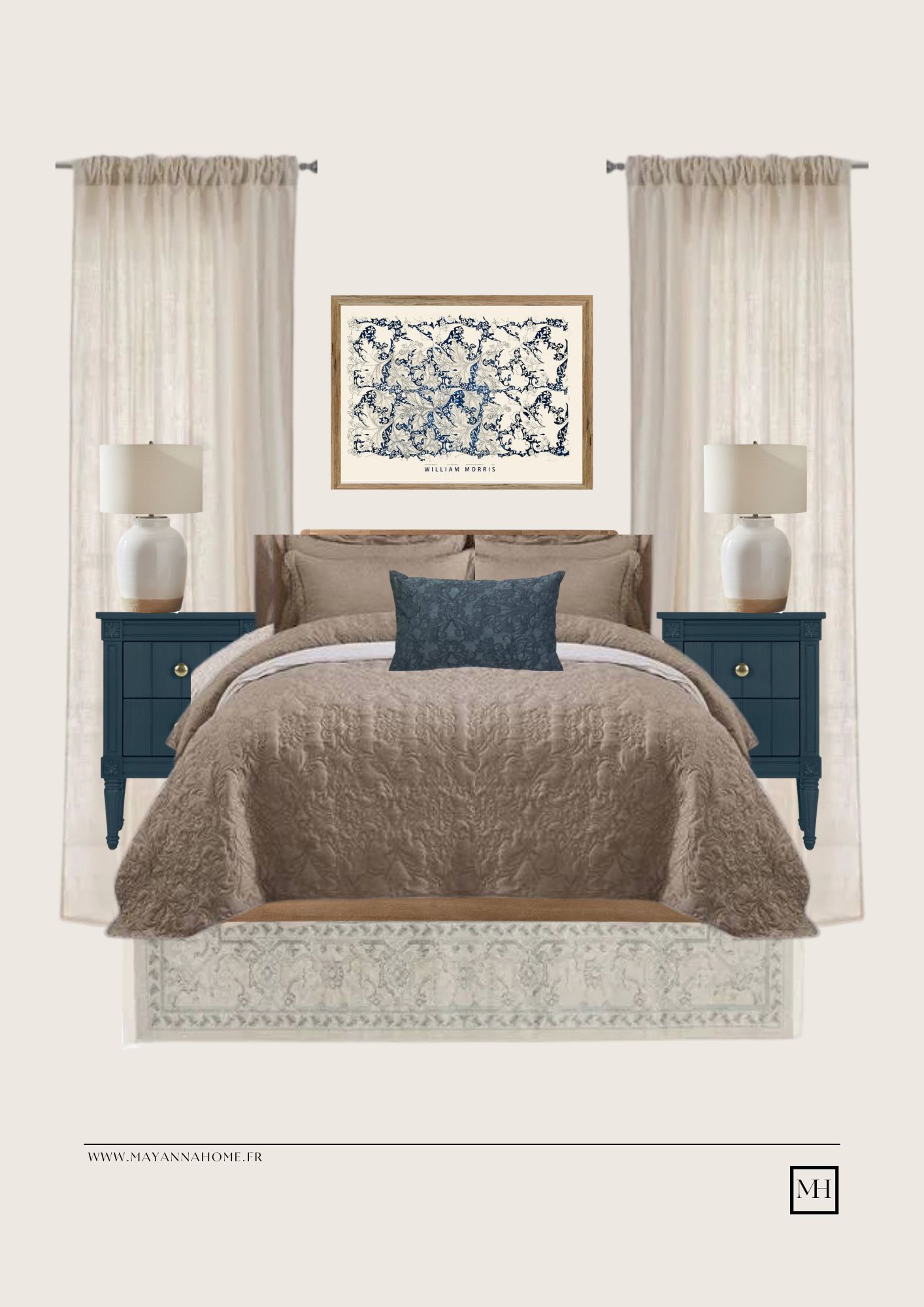 Un cocon enveloppant aux nuances profondes et naturelles, inspiré des intérieurs classiques revisités avec délicatesse.