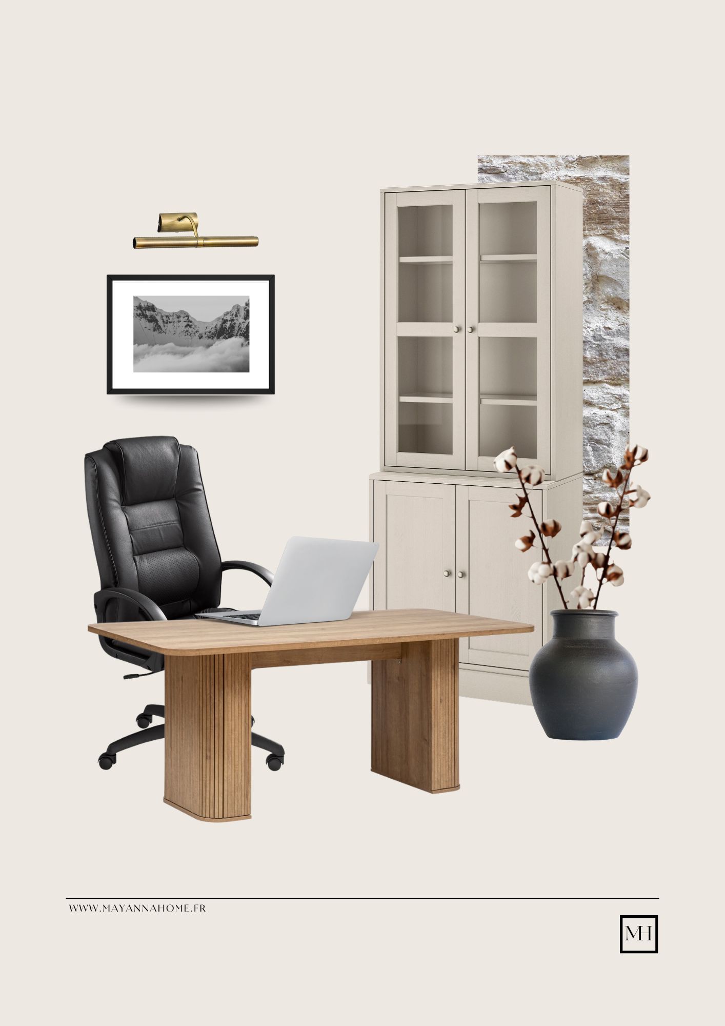 Pierre, bois et teintes douces composent un bureau élégant et intemporel, propice à la concentration et à la sérénité.