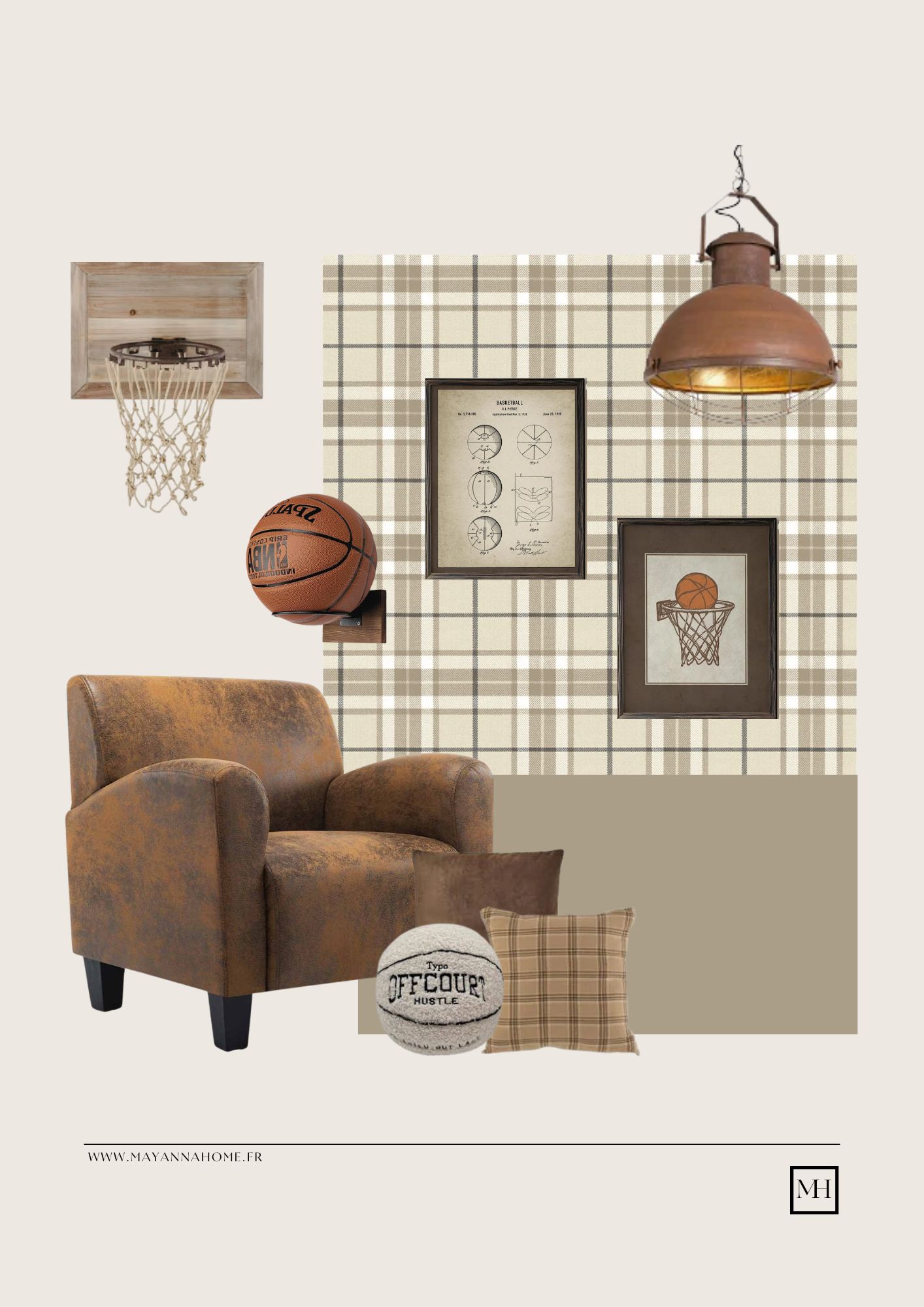 Un univers inspiré du basket, revisité avec des matières brutes et raffinées pour une ambiance à la fois dynamique et sophistiquée.